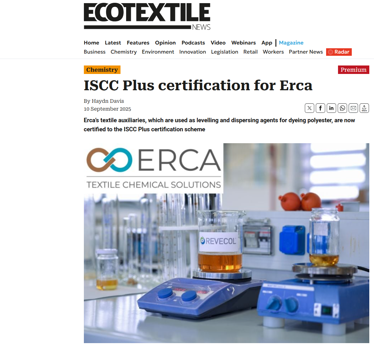 ecotextile.com – ISCC Plus certification for Erca